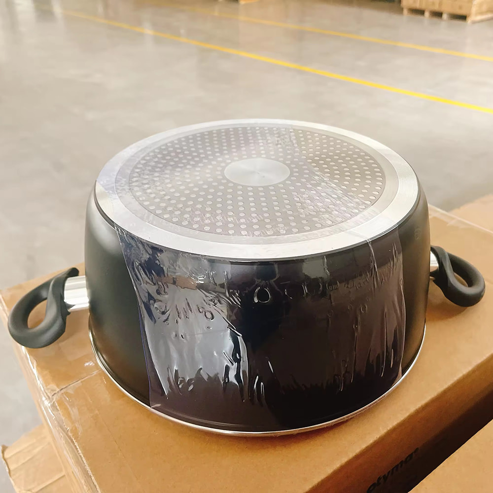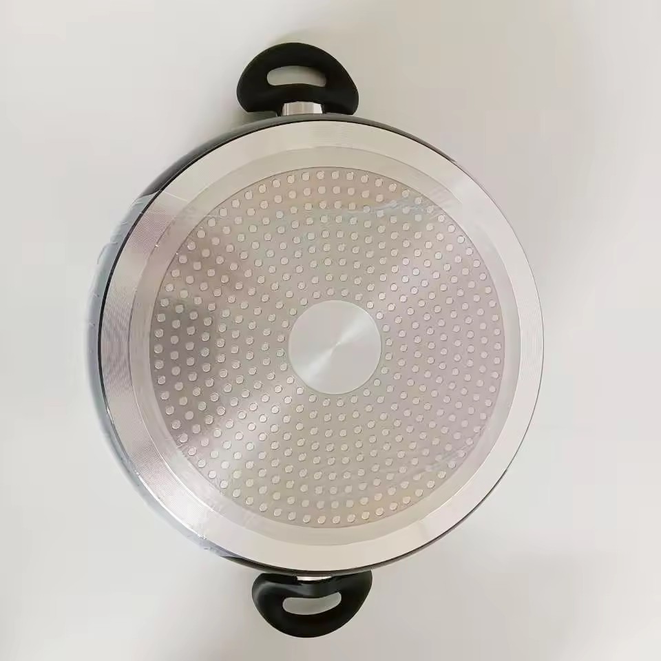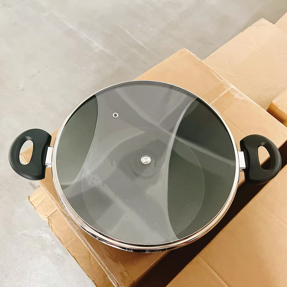 Pan friochadh Neamhmhaide Cásaróil Anlann Alúmanam Potaí agus Pannaí Cócaireachta Socraigh calafort anraith le clúdach gloine