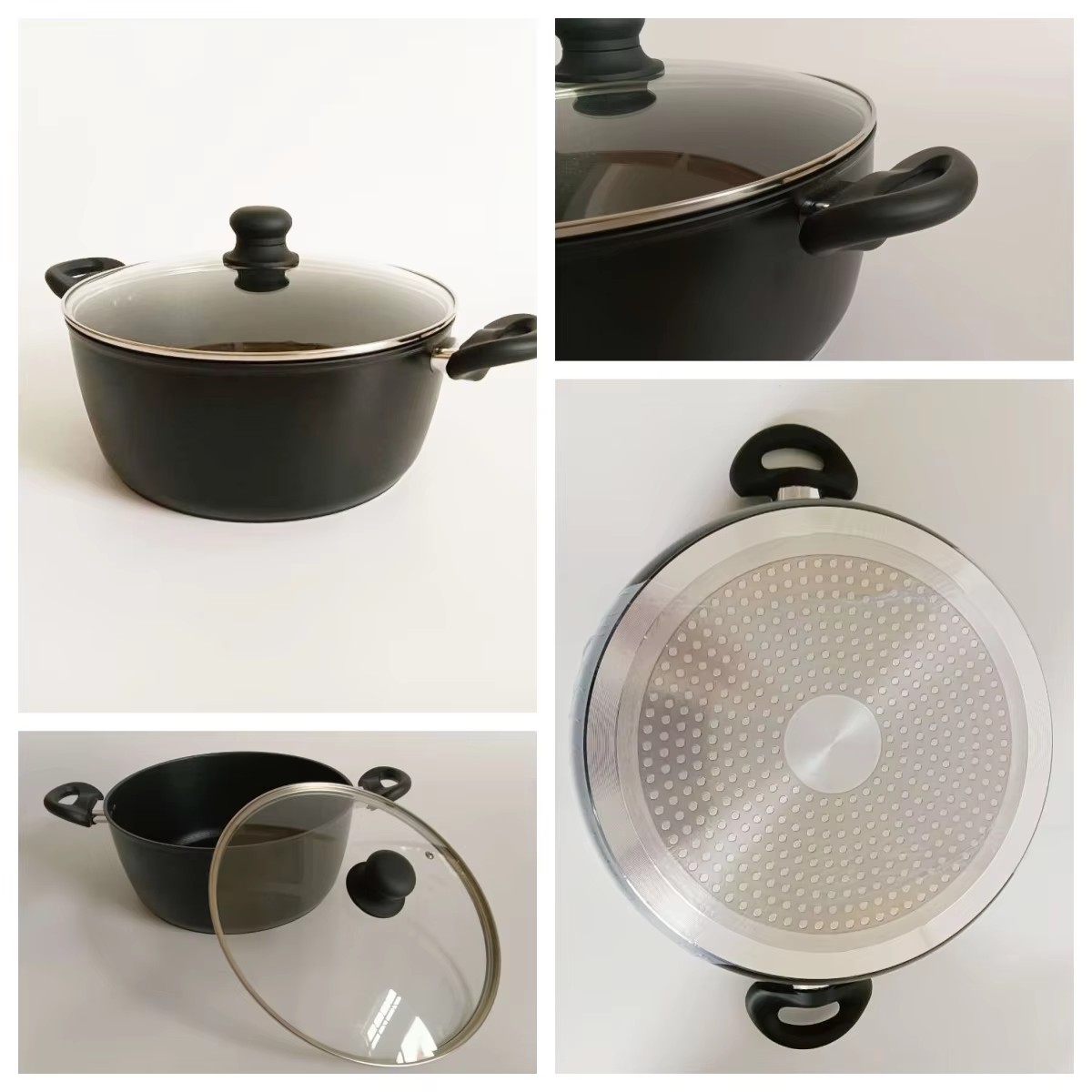 Pan friochadh Neamhmhaide Cásaróil Anlann Alúmanam Potaí agus Pannaí Cócaireachta Socraigh calafort anraith le clúdach gloine Wholesale