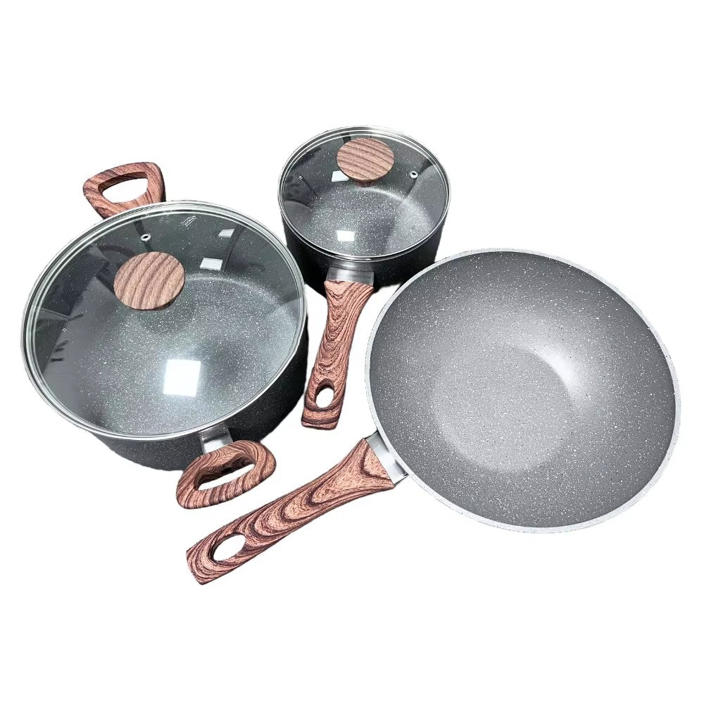 Potaí Cócaireachta Daite Dearaidh Coitianta Pota Cócaireachta Alúmanam CRUA Socraíonn earraí cócaireachta casserole neamh-mhaide Wholesale