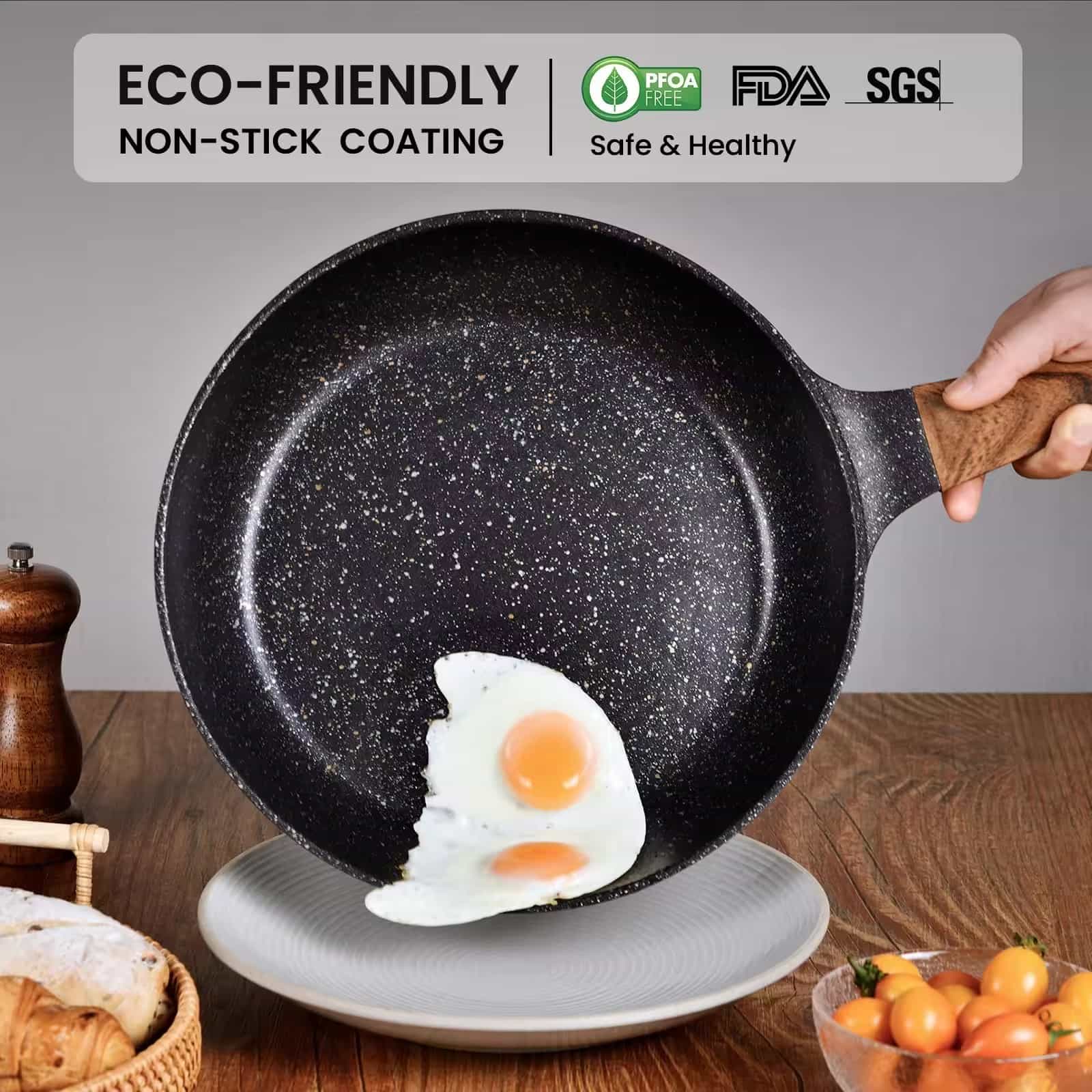 Baile / Táirge / Pan Fry / USA Europe Market Custom Logo Pan Stoc Alúmanam Teilgthe Neamh-bata